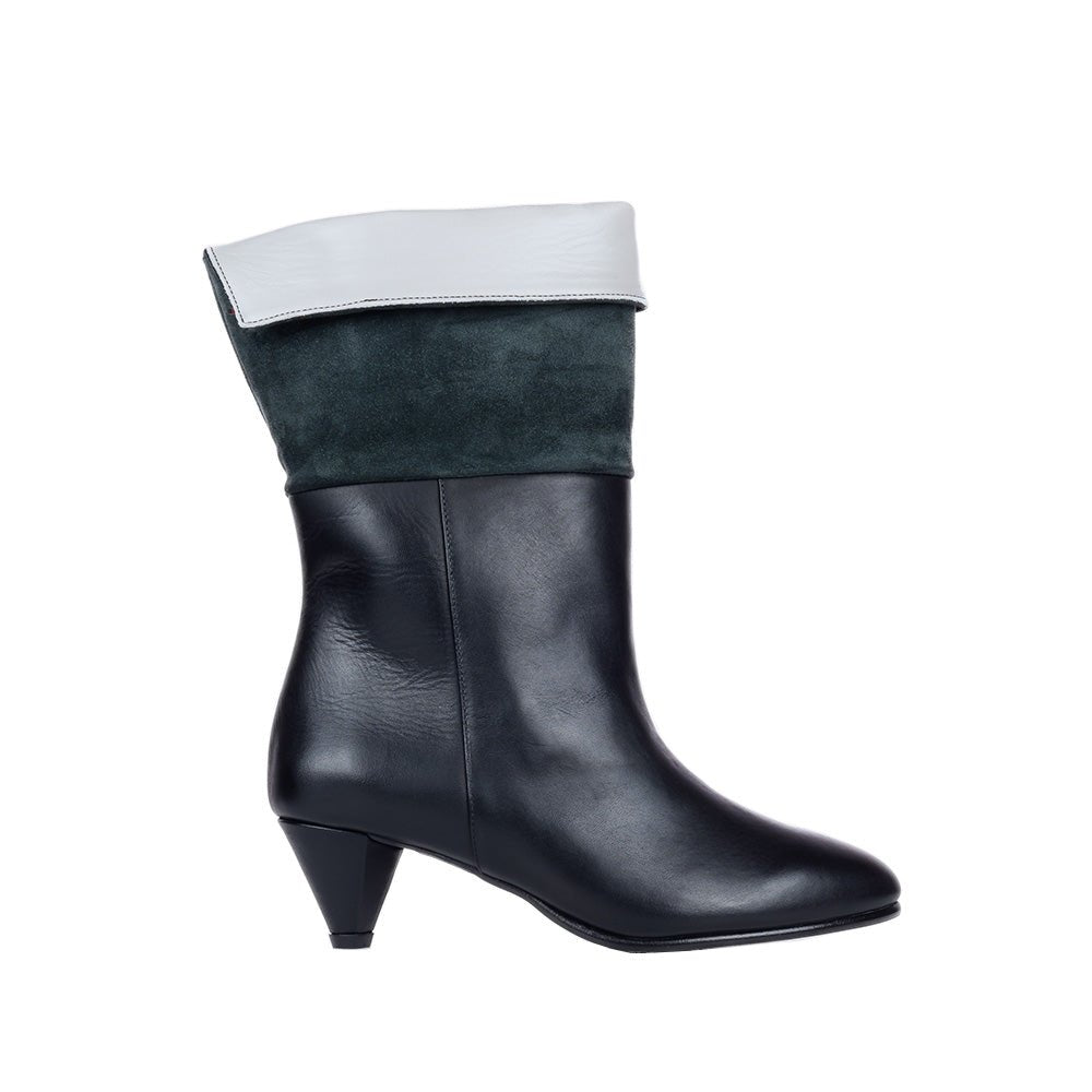 The front part is leather it is important nourish it with a generous greasy cream that will give it a wonderful complexion. The shaft is a dark blue suède and can be maintained by waterproof the material before the first use and then frequently repeat this if you want to keep your shoes in good condition.