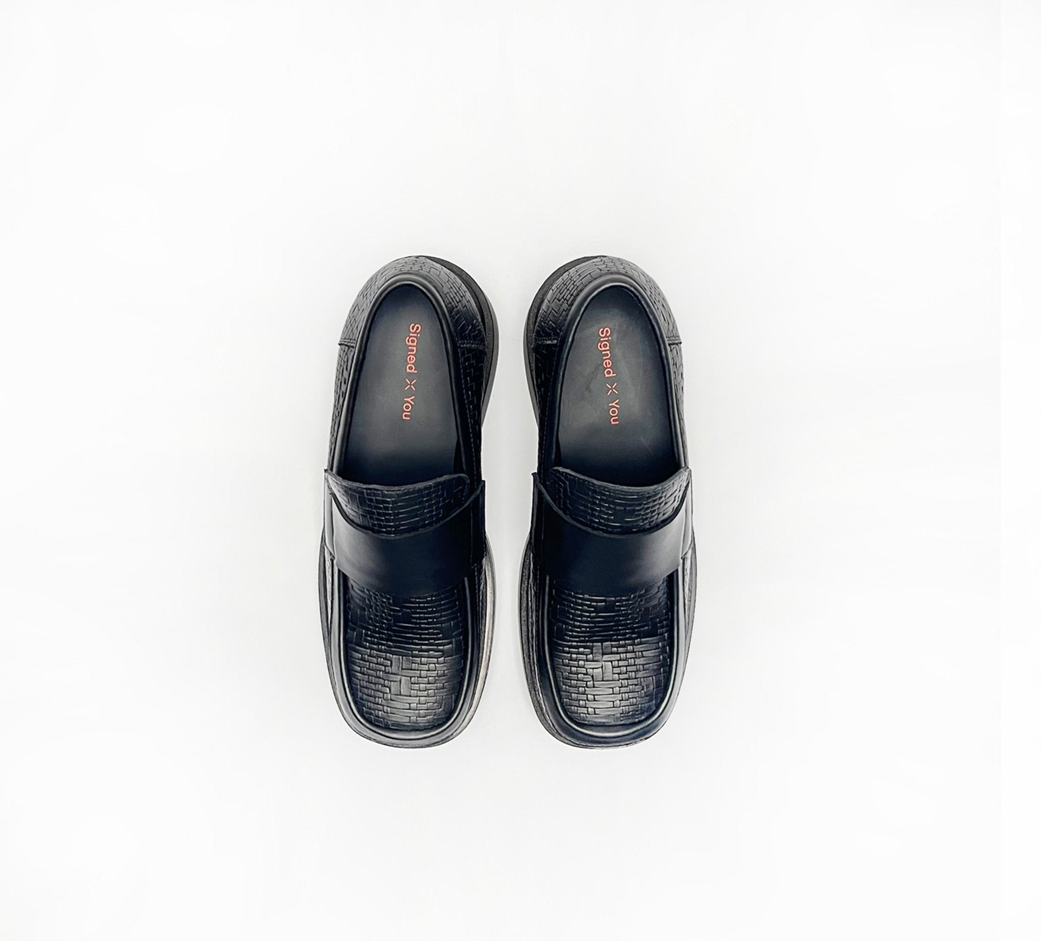 The Braided Black Loafer exudes class and sophistication, crafted from high-quality surplus leather with a timeless braided design.