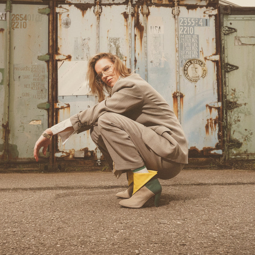 Step into style this season with the Lise Ankle Boot in Sand, Green, and Honey Yellow, a fresh and vibrant take on a classic silhouette. This striking combination of beige, green, and honey yellow celebrates the beauty of nature, making these boots a versatile statement piece for any wardrobe. The honey yellow flap is fully detachable, allowing you to switch between a subtle, elegant look or a bold pop of color that adds personality and flair to your outfit. Crafted with premium materials and careful attention to detail, these boots provide comfort without compromising style. The playful yet sophisticated color...