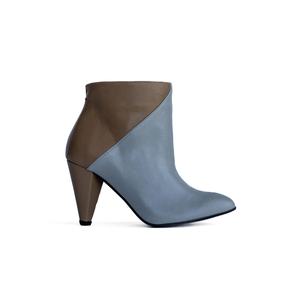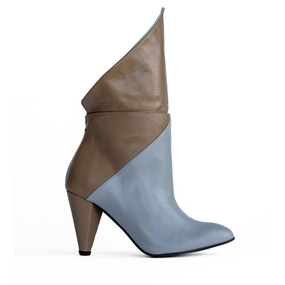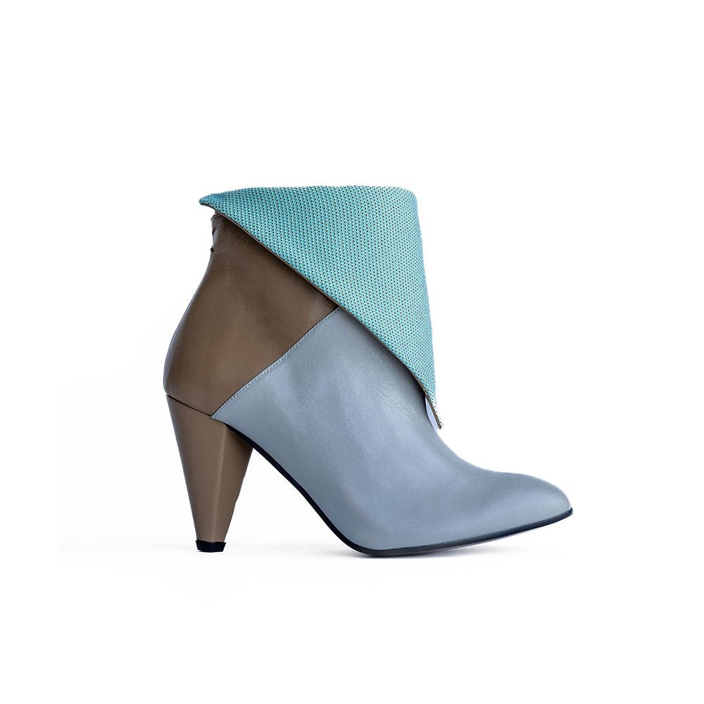 Step into bold elegance with the Lise Ankle Boot, crafted from a sophisticated combination of taupe and warm grey leather. This refined color palette brings versatility to your wardrobe, making them perfect art boots that stand out in any outfit. Designed for women who embrace style and confidence, these boots are ideal as elegant female shoes, going out shoes womens, or winter shoes, adding a touch of sophistication to every look. The removable collar, made from premium Kvadrat Patio textile in a delicate pastel turquoise, allows you to switch between a classic, understated style and a playful, eye-catching statement. Inspired...