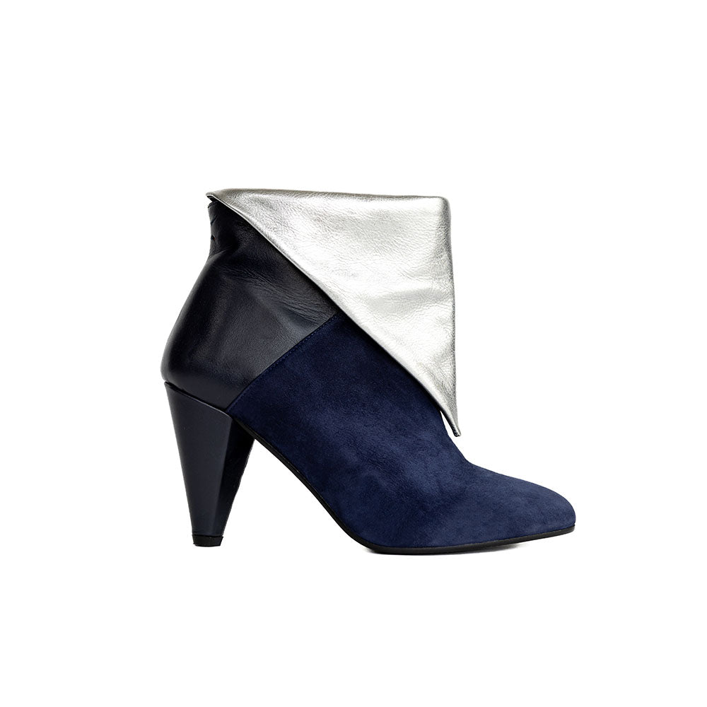 Lise Ankle Boots - Navy Blue & Silver heels